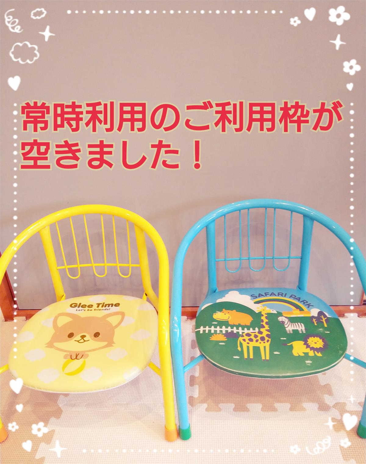 1月中からご利用いただける常時利用の枠に、空きが出ました!